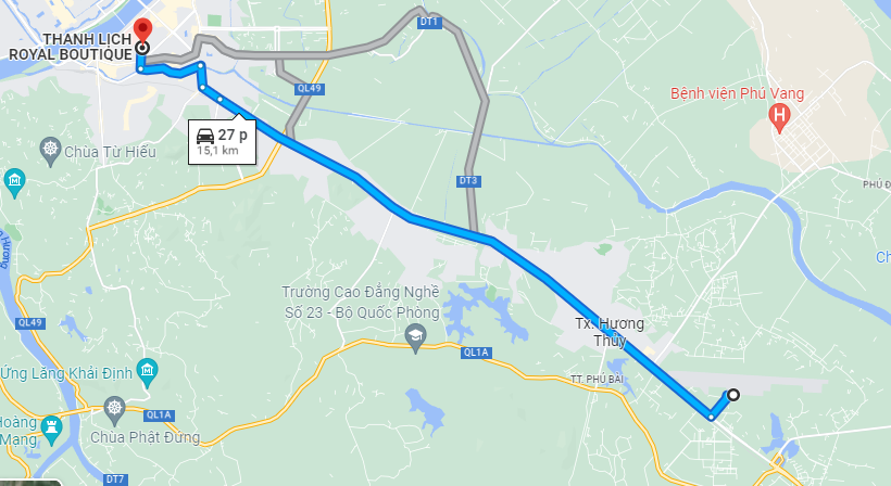 - Máy bay: Nếu bạn xuất phát điểm từ miền Nam hoặc miền Bắc, máy bay sẽ là lựa chọn hoàn hảo để đến thăm miền đất Cố Đô. Từ sân bay Phú Bài đến Khách sạn Thanh lịch cách khoảng 15km, nên bạn có thể đặt dịch vụ đưa đón sân bay của khách sạn hoặc gọi xe ôm/taxi công nghệ. Tuy khoảng cách hơi xa nhưng đường đi thẳng, chạy dọc theo dòng sông An Cựu. Cảnh đẹp của thành phố sẽ giúp bạn xua tan bớp những mệt mỏi sau một chuyến đi dài.