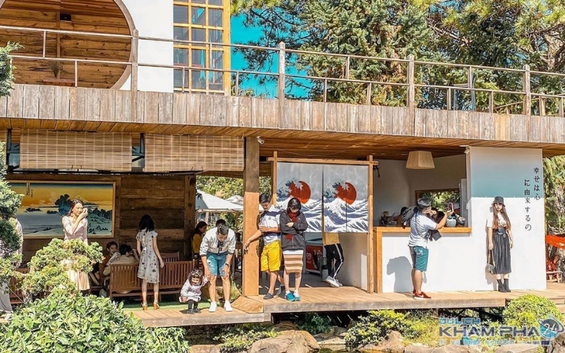 Quán cafe có một thiết kế lạ mắt mang phong cách Nhật Bản với chữ in trên tường trắng. Đây là background trở thành xu hướng tìm kiếm của nhiều bạn trẻ. Vừa uống cafe, nhâm nhi tách trà, vừa chiêm ngưỡng toàn cảnh tại khu du lịch Lá Phong thì thật tuyệt vời.