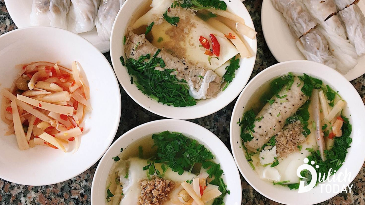 Mỗi bát nước dùng nóng ấm được thêm vài thìa hành phi, thịt băm kết hợp thêm miếng giò, quả trứng, rau mùi thế là chúng ta đã có bát nước dùng bánh cuốn nóng hôi hổi, ấm bụng vừa thổi vừa ăn. Đây là món ăn cực kỳ ngon và đặc biệt ở nơi đây, du khách tuyệt đối không được bỏ lỡ nhé.