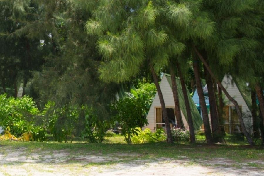 Các phòng nghỉ ở Côn Đảo Camping được thiết kế giống như những căn bungalow gỗ nho nhỏ nằm sát nhau, đúng như cái tên của nó, những căn phòng nghỉ này đều có hình dạng giống như một chiếc lều cắm trại, có cửa sổ kính nhìn ra khu vườn xanh mát, giúp bạn có một không gian sinh hoạt thư giãn nhất có thể.