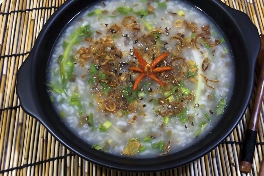 Những hạt cháo trắng được ninh nhừ hòa quyện với những miếng thịt hàu béo múp, thơm ngậy được xào thơm lên, ăn kèm cùng với chút hành lá, rau răm băm nhuyễn và chút cay nồng của hạt tiêu và gừng thái sợi sẽ làm cho buổi sáng của bạn được tràn trề năng lượng, giúp bạn có thể thoải mái hoạt động, khám phá cảnh đẹp của hòn đảo mà không sợ nhanh bị đói.