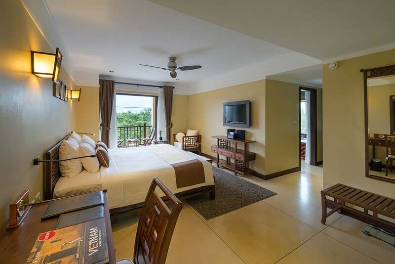 Là hạng phòng có diện tích lớn nhất lên tới 76 m2 và vẫn là phong cách đậm chất Hội An tạo nên một không gian nghỉ dưỡng vô cùng ấm áp. Phòng này cũng có ban công rộng lớn, đón nhận nhiều ánh sáng tự nhiên cho căn phòng. Đặc biệt mỗi ban công còn được trang bị thêm giường tắm nắng cực “chill” và một bể sục nhỏ ngoài trời nữa cơ. Bạn có thể tận dụng nơi này để tụ họp trò chuyện cùng nhóm bạn hoặc gia đình mình. Vừa bên cạnh những người thân yêu vừa ngắm nhìn cảnh đẹp thì còn gì bằng đúng không?