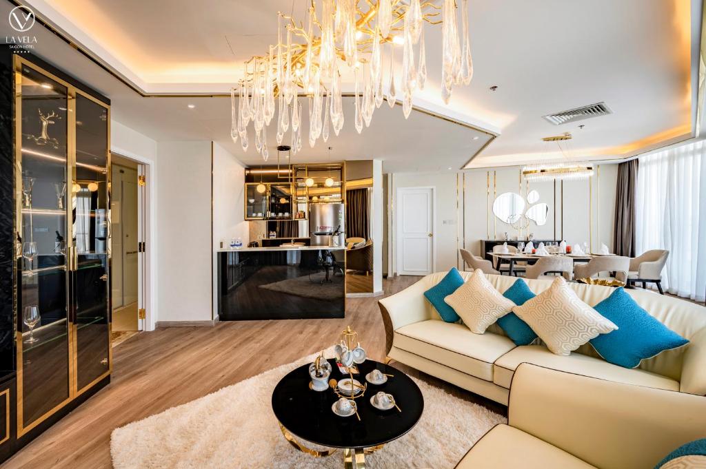 Đẳng cấp, sang trọng bậc nhất tại La Vela Saigon Hotel chính là không gian nghỉ dưỡng, lưu trú xa hoa tại hạng phòng President Suite này. Với thiết kế không gian diện tích rộng 120m2, căn phòng được phân chia thành 1 không gian phòng khách ấm áp, 1 khu vực phòng làm việc đầy yên tĩnh, 1 phòng ngủ với hướng view ban công đẹp ngất ngây, 1 không gian bếp tiện nghi, hiện đại và cuối cùng là 1 khu vực phòng tắm được trang bị bồn tắm nằm đầy thư thái, đích thực là nơi lưu trú, nghỉ dưỡng đáng giá, tuyệt vời dành cho giới thượng lưu.