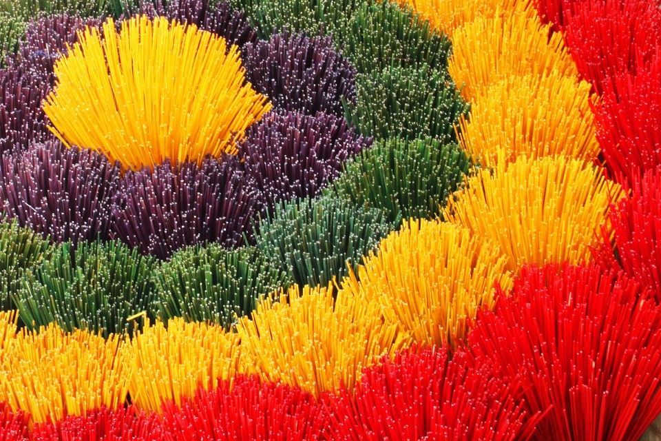 Những cây nhang của Làng Hương Thủy Xuân Huế được bảo quản tốt và màu sắc đẹp mắt đã trở thành một trong những địa điểm sống ảo mới ở Huế của giới trẻ. Nhang được làm từ những thanh tre nhỏ và nhuộm nhiều màu có thể nói là làm bừng sáng cả một góc phố như màu của nắng, màu của mây và màu của bầu trời, đa màu sắc. Đây là phông nền rực rỡ cho hàng nghìn bức ảnh đã được chụp vô cùng đẹp mắt tại địa điểm du lịch mới mẻ này.