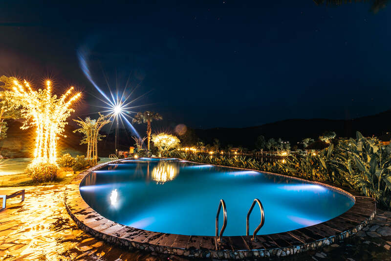Với bể bơi vô cực nằm ngoài trời giữa khung cảnh thiên nhiên thơ mộng, trữ tình của Le Farm – Happy Homestay thì chắc chắn du khách không nên bỏ lỡ khi đến đây. Hoà mình vào dòng nước, tham gia vào các trò chơi, giải trí cũng như vui vẻ bên bạn bè, người thân sẽ đem lại cho du khách những kỉ niệm khó quên.