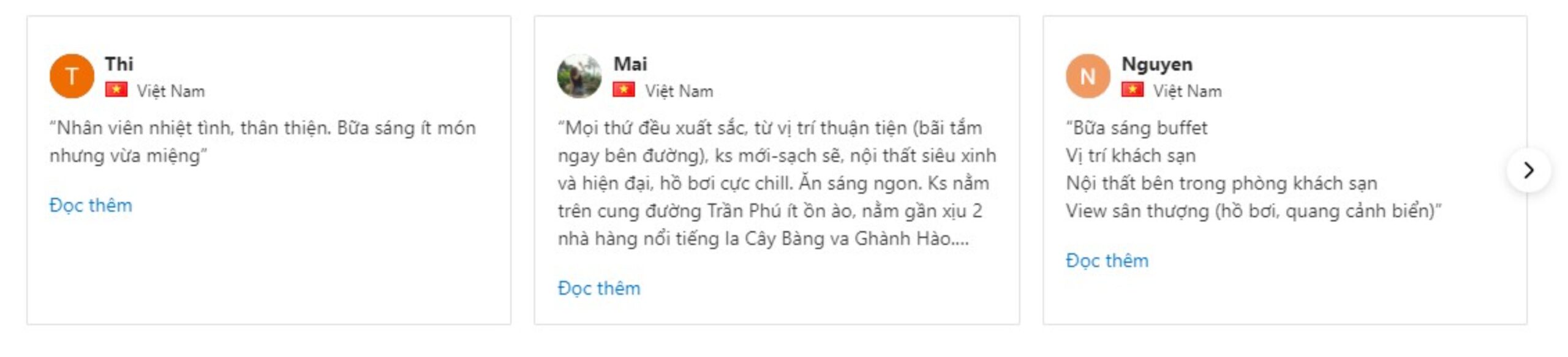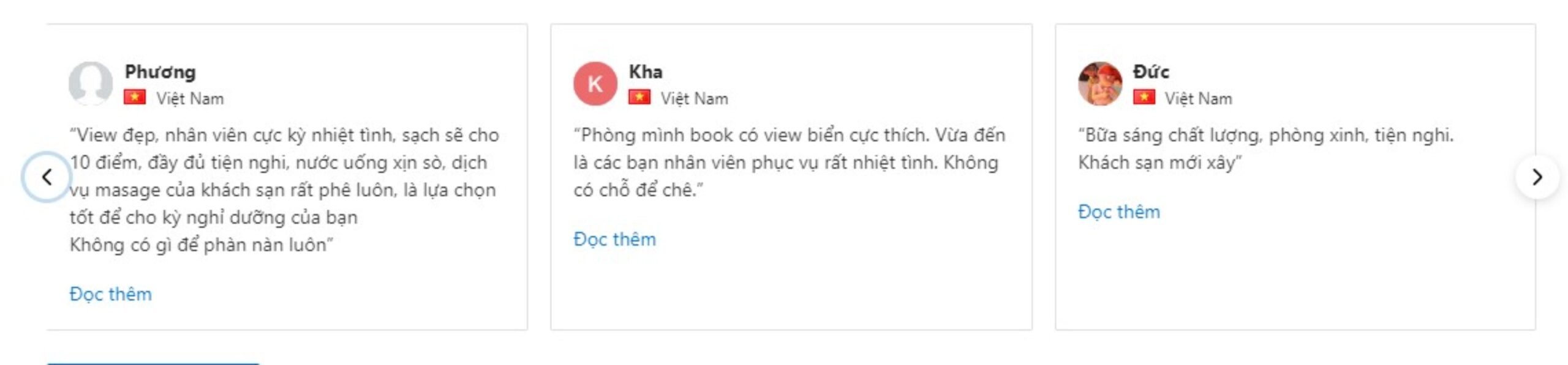 Dưới đây là một vài đánh giá tiêu biểu của những khách hàng từng có trải nghiệm lưu trú tại khách sạn Lief Mila Vung Tau mà chúng tôi thu thập được. Nhìn chung, mọi người đều dành nhiều lời khen cho khách sạn với những tiêu chí nổi bật là bữa sáng ngon miệng, vị trí đẹp, view thu hút và đầy đủ các dịch vụ tiện lợi đáp ứng tốt nhiều nhu cầu khi đi nghỉ dưỡng. Quý khách có thể tham khảo những đánh giá trên để đưa ra quyết định đặt phòng nhé.