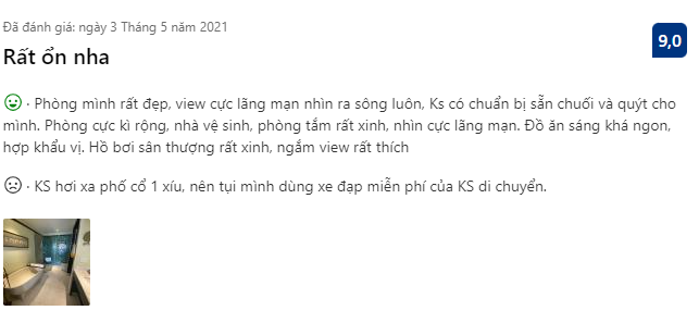 Dù vị trí cách phố cổ hơi xa một chút như bạn Kim vẫn rất hài lòng với 2 đêm nghỉ của mình tại Little Suite River: