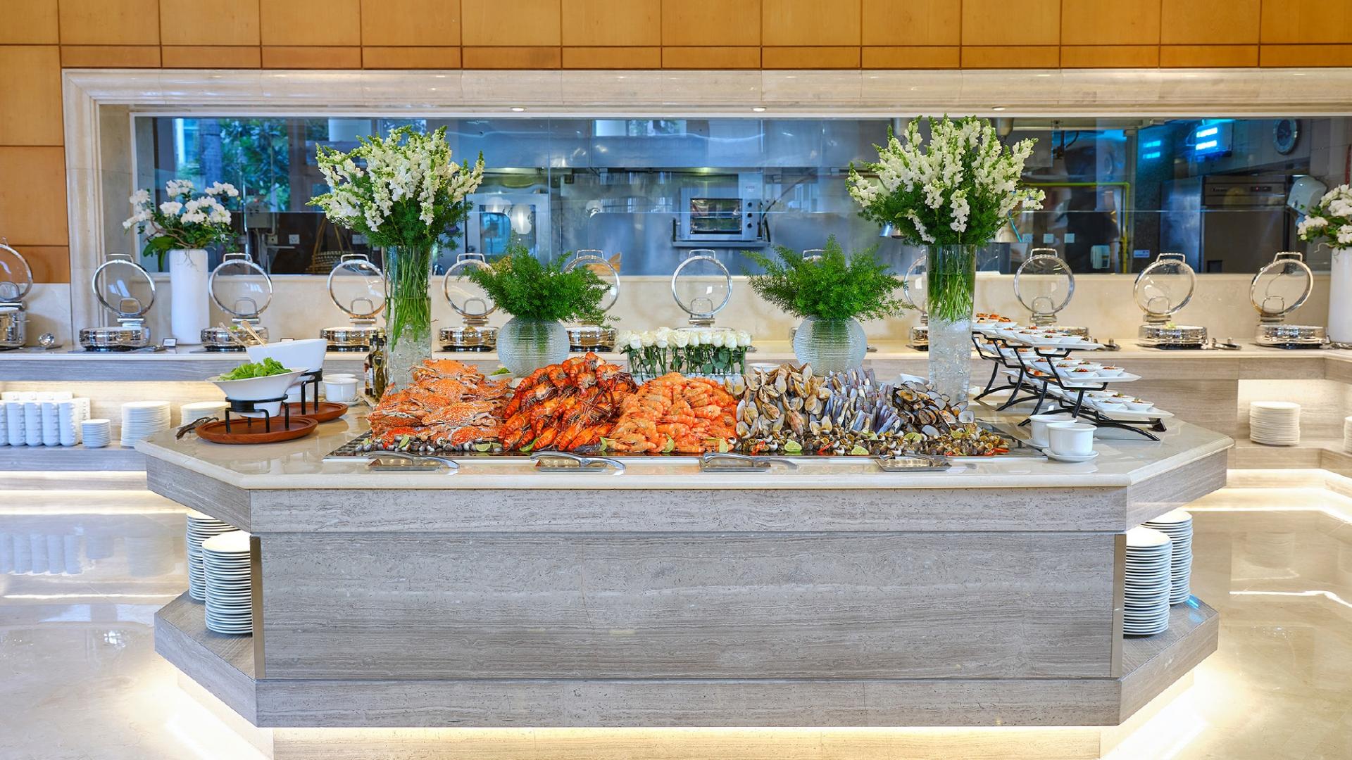 Atrium: đến và trải nghiệm tại Lotte Hotel Saigon – Buffet với các bữa buffet cao cấp, rất nhiều các món ăn sang trọng theo phong cách từ Á đến Âu hay các món chủ đề tháng sẽ đem lại những trải nghiệm thú vị cho du khách.