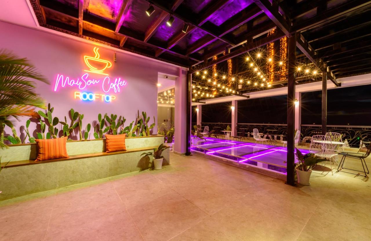 Cửa hàng cafe Maison cũng nằm trên tầng thượng của Maison Hotel Phú Quốc nhưng mang một không gian và phong thái nhẹ nhàng, du dương hơn. Sự phối kết hợp giữa cách trang trí hiện đại kết hợp với các ánh đèn neon rực rỡ tạo nên một sự trẻ trung năng động của quán. Du khách có thể thử các món cafe hay sinh tố ngon lành và ngắm nhìn cảnh vật đẹp từ đây.