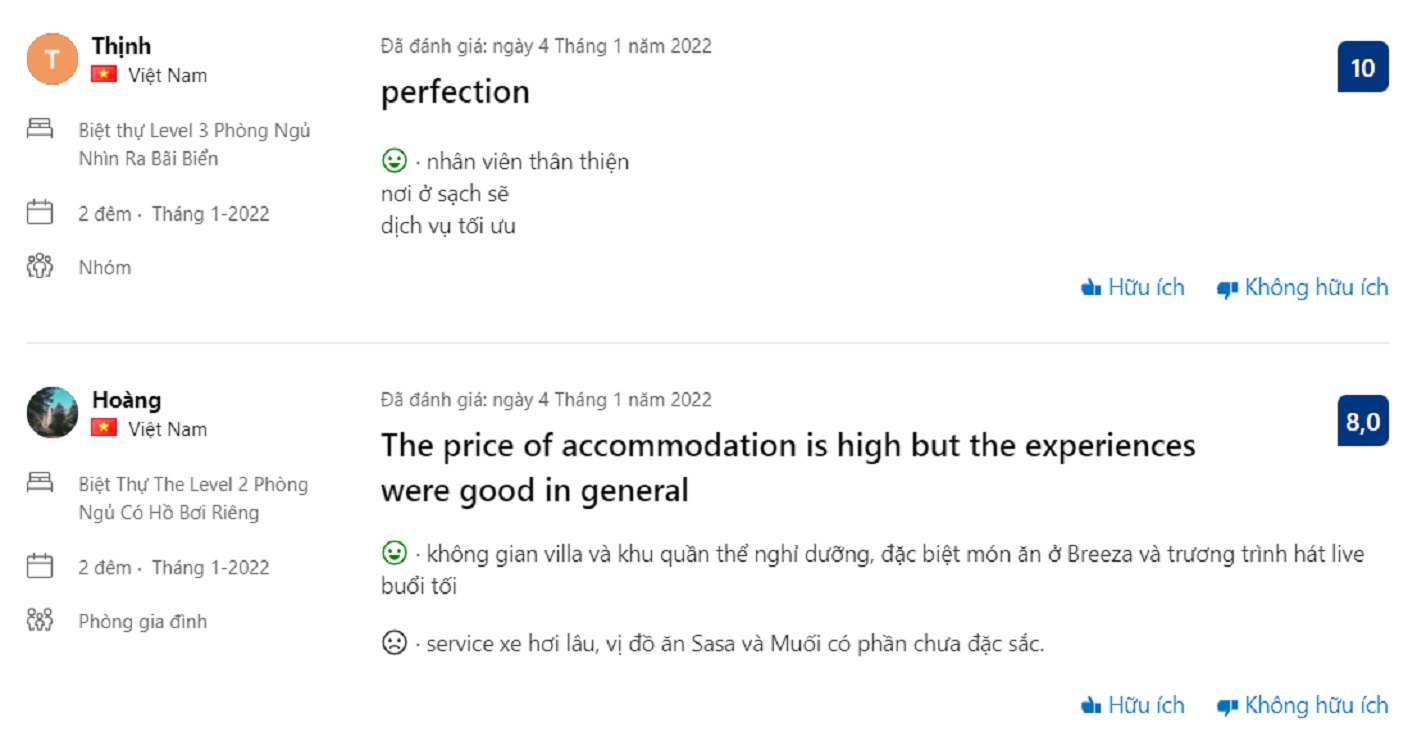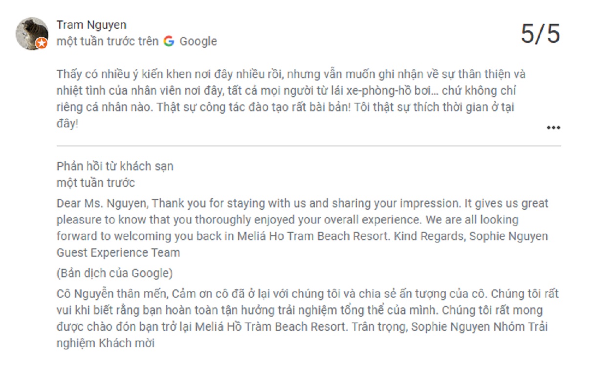 Review khách hàng về Melia Hồ Tràm Beach Resort