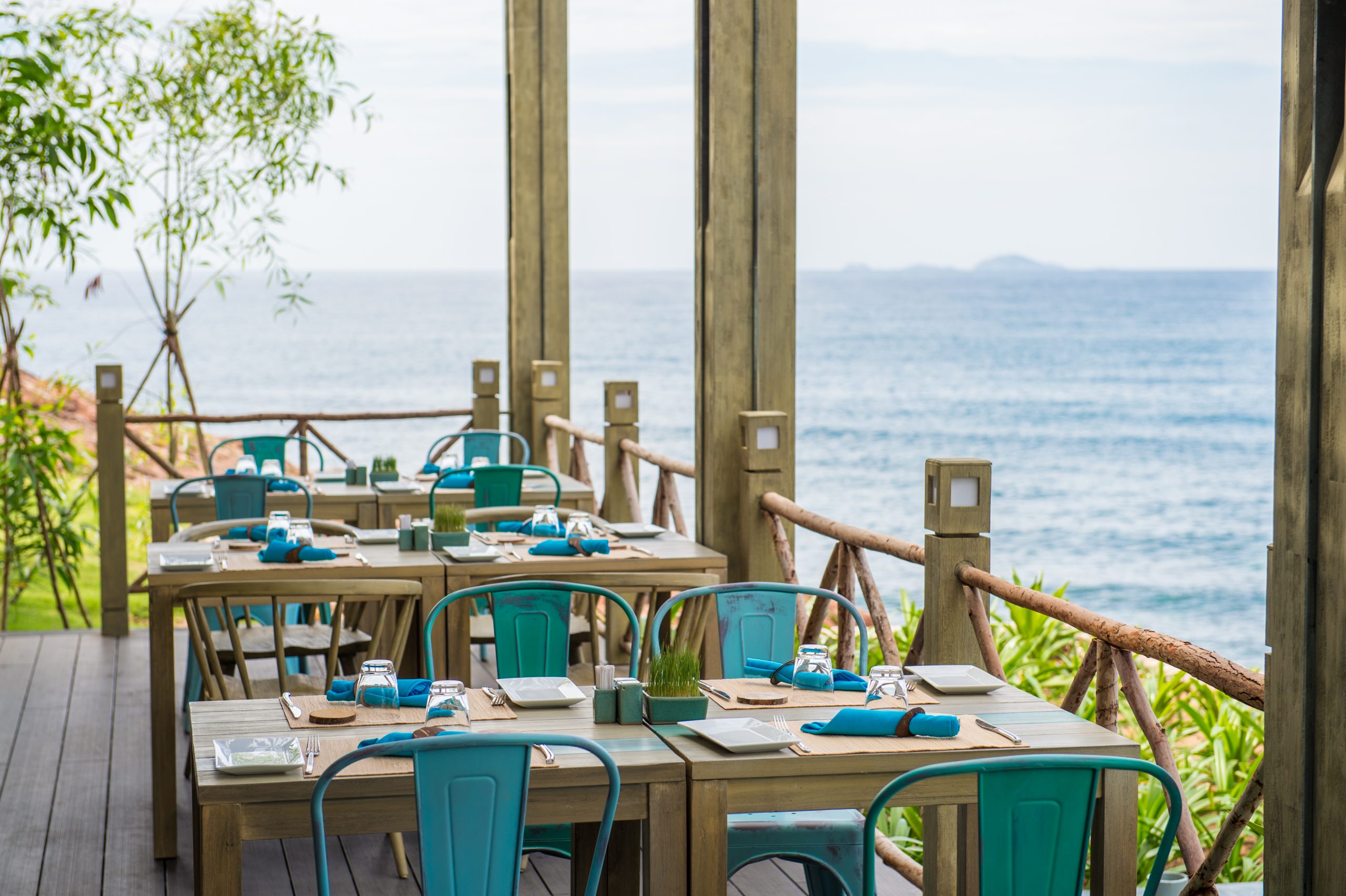Nhà hàng Ý La Baia nằm ẩn mình bên dưới chân một sườn núi, bên cạnh bể bơi mang đúng chất Ý ngay tại Việt Nam, cùng với tầm nhìn ra vịnh tuyệt đẹp để thưởng thức những ly cocktail, bia thủ công hoặc café sáng.