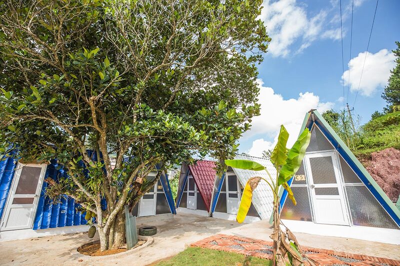 Như đúng với tên gọi, trong không gian một hình tam giác nhỏ nhỏ xinh xinh, phòng được trang bị một giường đôi với gam màu tím nhã nhặn, đậm chất trữ tình hay màu xanh biển nhẹ nhàng, tươi mới. Đồng thời, để tạo nên một không gian thoáng đãng, mát mẻ hơn, nhà tam giác còn được thiết kế một gian cửa sổ nhỏ trong phòng, giúp những làn gió mát từ thiên nhiên có thể nhè nhẹ thổi mát cả căn phòng.