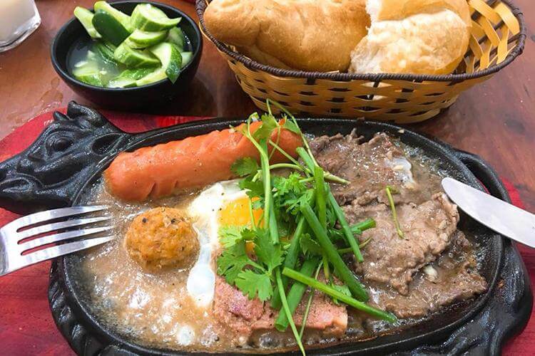 Đây là địa điểm ăn sáng quen thuộc của các tín đồ đam mê ẩm thực muôn nơi. Món ăn này được làm từ những nguyên liệu như bò bít tết, trứng, bánh mì nóng ăn cùng với rau sống, cà chua… tạo nên tổng thể món ăn rất thơm ngon, đảm bảo cung cấp đủ dinh dưỡng để bắt đầu một ngày làm việc hăng say.
