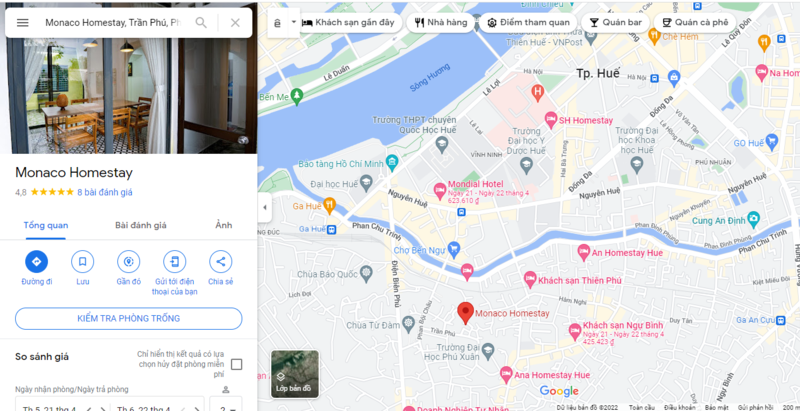 Thông tin đặt phòng tại Monaco Homestay Huế