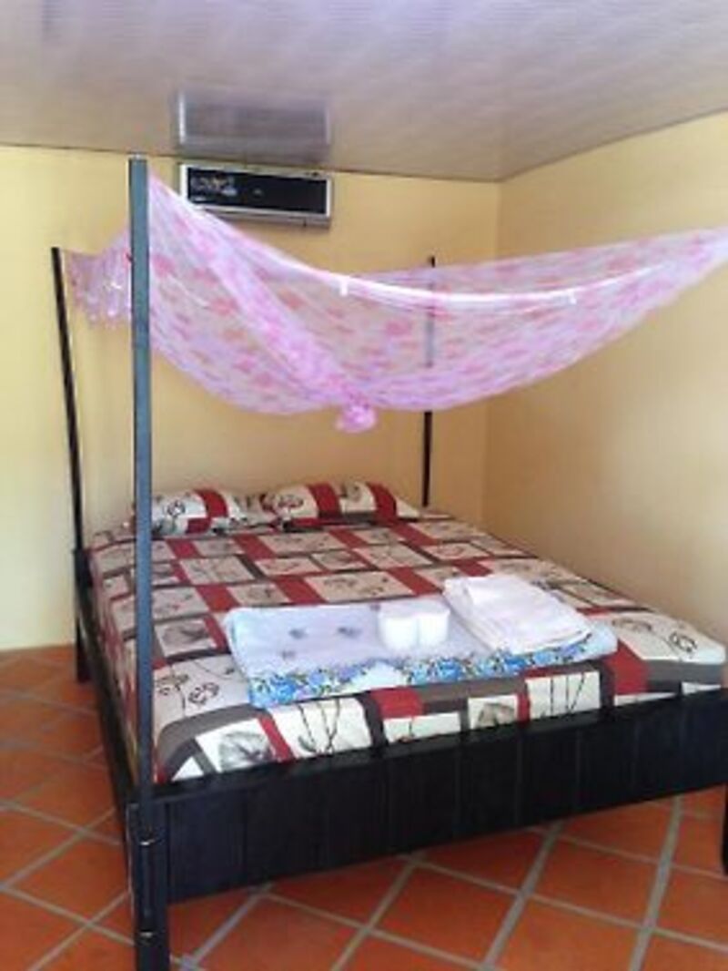 Với không gian rộng rãi, diện tích khoảng 32m2, phòng được bố trí một giường đôi to, có kèm màn chống muỗi. Phòng trang bị đầy đủ các thiết bị, vật dụng hiện đại cho quý khách sử dụng như: phòng tắm có vòi sen, quạt điện, tủ lạnh,… và có lối đi riêng dẫn vào từng căn phòng.