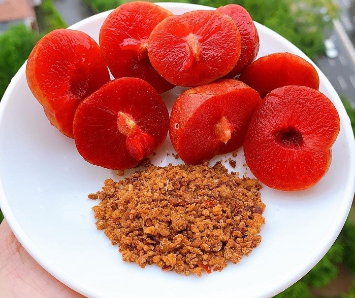 Khi xoài hay cóc lắc với món muối này sẽ cho ra vị chua chua và giòn giòn của hoa quả kết hợp với vị của muối ớt hấp dẫn vô cùng khiến nhiều người nghe thôi đã muốn làm hay mua để ăn ngay.