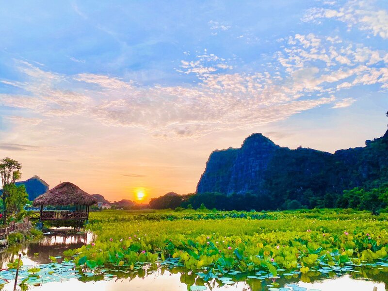 Mường Village Ninh Bình được thiết kế giữa không gian đất trời và núi rừng mênh mông rộng rãi bao la. Các căn nhà nhỏ tạo nên vẻ đẹp của một vùng quê yên tĩnh nằm nép mình dưới chân núi còn có tầm nhìn hướng thẳng ra đầm sen dài bất tận. Nơi đây vào khoảng tháng 5 – tháng 8, du khách sẽ được chiêm ngưỡng vẻ đẹp trong trẻo và thơ mộng của những đóa sen thi nhau khoe sắc.