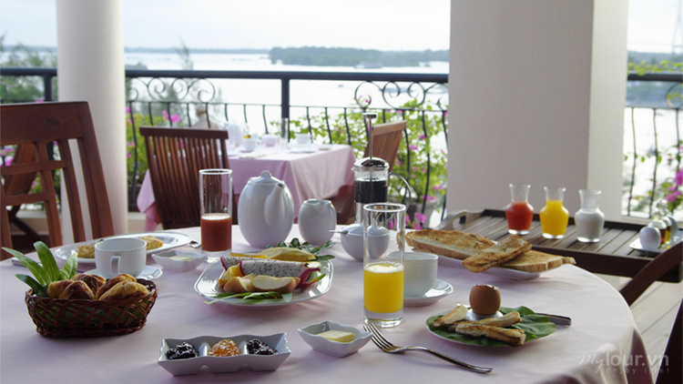 Ngoài ra, Nam Bo Boutique Hotel có cảnh hướng ra toàn sông Mê Kông. Từ vị trí ban công, bạn có thể ngắm nhìn cuộc sống tấp nập của người dân trên sông. Đồng thời, không gian và phong cách thiết kế như đang tái hiện lại đời sống giới thượng lưu Nam Bộ trong những năm của thế kỉ XIX.