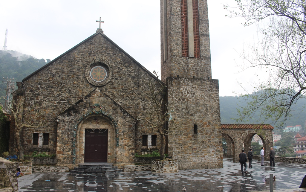 Nét ấn tượng của nhà thờ này chính là những phiến đá đều ngả màu xanh rêu tô điểm thêm vẻ đẹp trầm mặc và cổ kính của nó do toàn bộ công trình được xây dựng bằng đá lại được mây mù bao phủ quanh năm. Hơn thế nữa, ở khu vực ngoài thánh đường, có rất nhiều cửa cuốn rộng rãi, nơi thị trấn Tam Đảo có thể thu trọn vào trong mắt bạn.