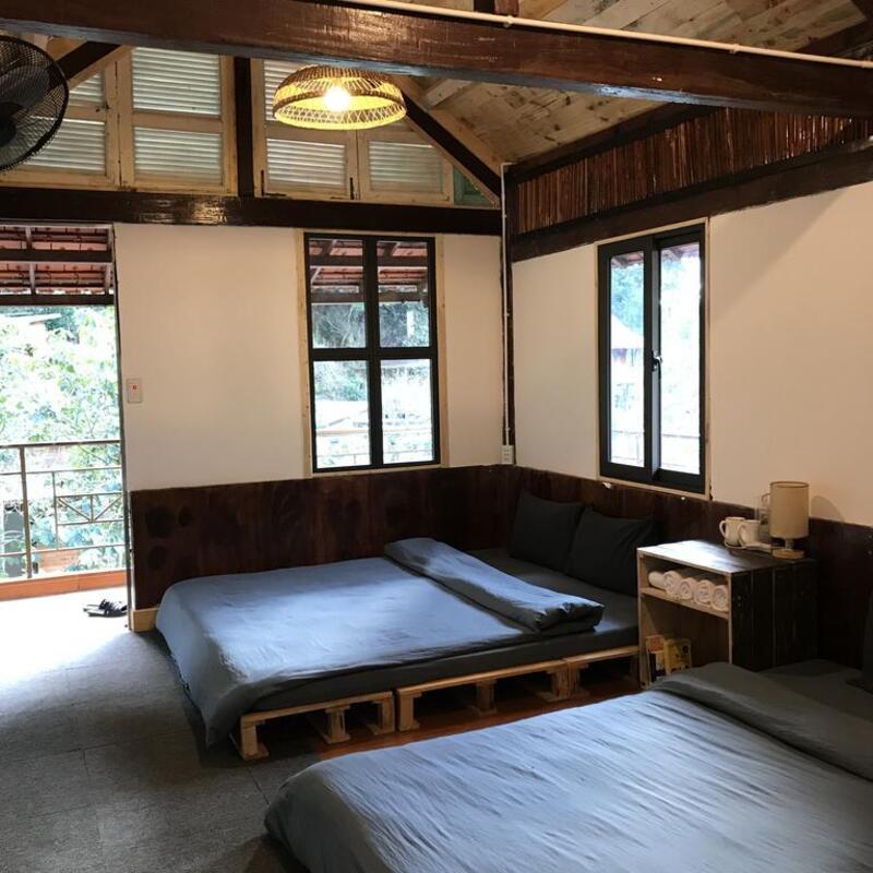 Những nhóm bạn đang tìm kiếm một địa điểm dừng chân có thể lựa chọn hạng phòng tập thể của Nhà bên suối với sức chứa lên tới 16 người. Phòng gồm nhiều giường tầng đơn để tiết kiệm diện tích cho căn phòng. Phòng gồm một nhà tắm chung cùng các thiết bị hiện đại, tiện nghi lên tới 3 sao. Ngoài ra, phòng còn có nhiều góc sống ảo xinh xắn để bạn có thể thỏa sức thể hiện tài năng nhiếp ảnh của mình.