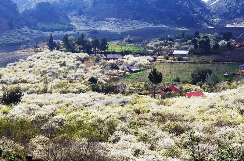 Nhắc đến Mộc Châu, chắc hẳn mọi người sẽ nghĩ ngay đến màu trắng tinh khôi, thơ mộng của những thung lũng mận đang nở hoa trải dài bất tận. Mỗi độ xuân về, hoa mận lại nở phủ trắng khắp vùng tạo nên khung cảnh như chốn bồng lai tiên cảnh, khiến du khách cảm giác như đang lạc giữa xứ sở thần tiên trong truyền thuyết. Để có cơ hội đắm chìm trong vẻ đẹp mê hồn của thung lũng mận Nà Ka, du khách nên ghé tham quan vào khoảng tháng 1 đến tháng 2 âm lịch.