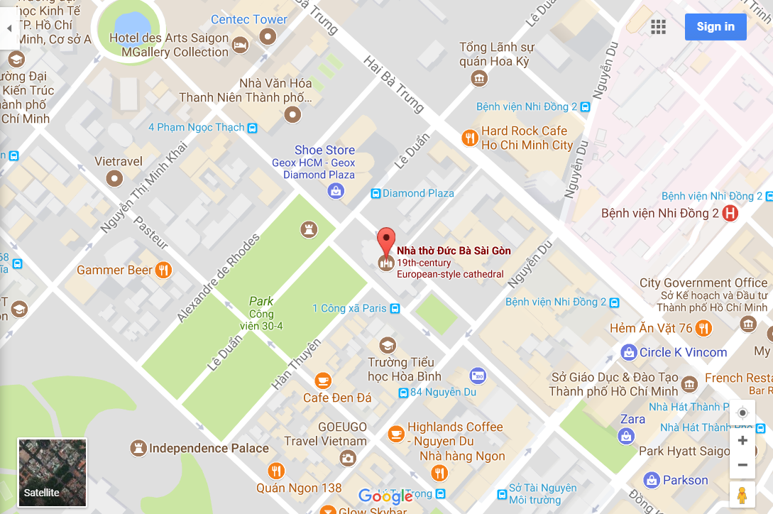 Bạn đi bằng phương tiện cá nhân thì chỉ cần đi theo hướng dẫn trên bản đồ đường tới địa chỉ nhà thờ Đức Bà Sài Gòn và gửi xe ở trường Hoà Bình, Nhà văn hóa Thanh niên hoặc Hội trường Thống nhất đều được nhé.