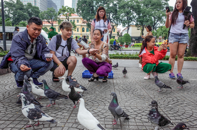Cho bồ câu ăn trước Nhà thờ Đức Bà là một trải nghiệm thú vị cho bạn cảm giác như đang ở trời Tây vậy. Những chú bồ câu béo múp rất thân thiện với con người. Các bạn có thể chuẩn bị một ít hạt hay vụn bánh mì để tiếp cận gần hơn với những chú bồ câu đáng yêu này nha.
