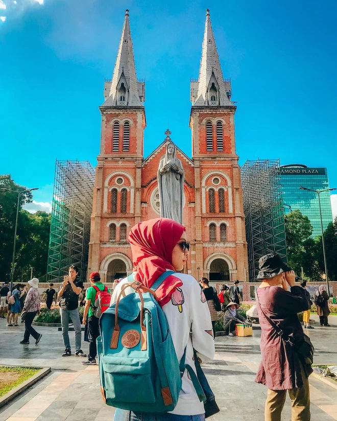 Một số hình ảnh check-in của du khách tại nhà thờ Đức Bà