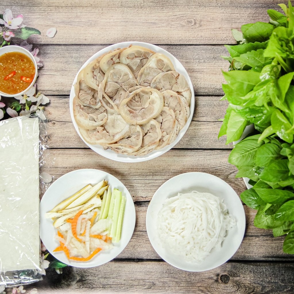 Tất cả nguyên liệu được gói gọn trong lớp vỏ bánh tráng, chấm cùng với mắm nêm hoặc nước tương được pha chế riêng. Mỗi miếng cuốn đều chứa đựng hương vị thơm ngon, hấp dẫn. Món ăn này rất thích hợp vào những ngày hè nóng nực.