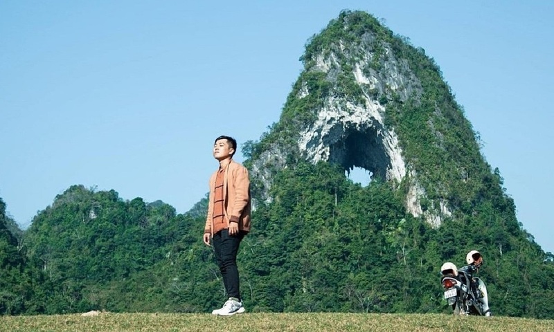 Những dãy núi trập trùng, bên dưới là hồ nước êm ả đã tạo nên một bức tranh thủy mặc bình yên và quá đỗi nên thơ. Trong bức tranh ấy, điểm nhấn chính là ngọn núi Mắt Thần với một lỗ thủng khổng lồ