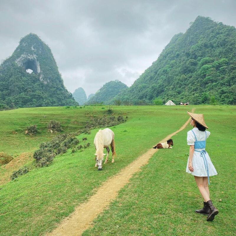 Phía dưới chân núi là những thảm cỏ mang xanh mơn mởn, căng tràn nhựa sống. Du khách không khó để nhìn thấy những đàn trâu, đàn bò của bà con địa phương đang nhởn nhơ gặm cỏ chẳng màng sự xuất hiện của những vị khách phương xa.