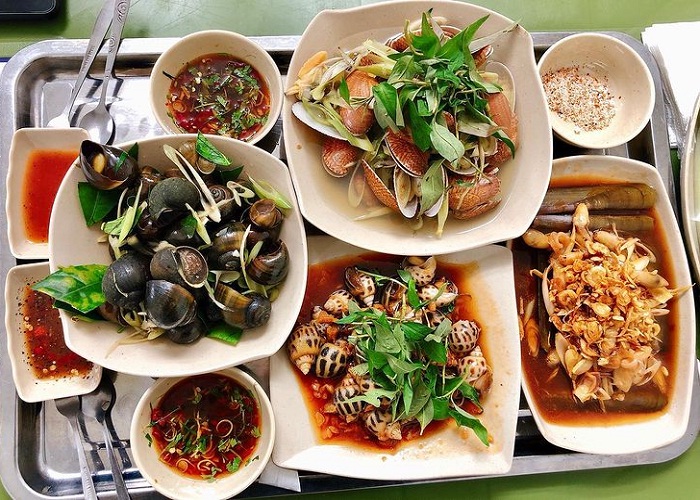Những món ốc thần thánh, gia vị thơm ngon như: Ốc hương sốt trứng muối, ốc móng tay, ốc sốt me, ốc hấp, ốc nướng,… quán còn phục vụ nghêu, sò và mực. Bên cạnh đó nếu muốn giải ngấy hoặc chuyển một số món thì bạn có thể gọi thêm ăn cháo hải sản, nem chua rán, trà đá ngon “nức nở”. Đến đây vào mùa đông để ấm bụng với ly trà đá hay tô cháo hải sản thì còn gì bằng.
