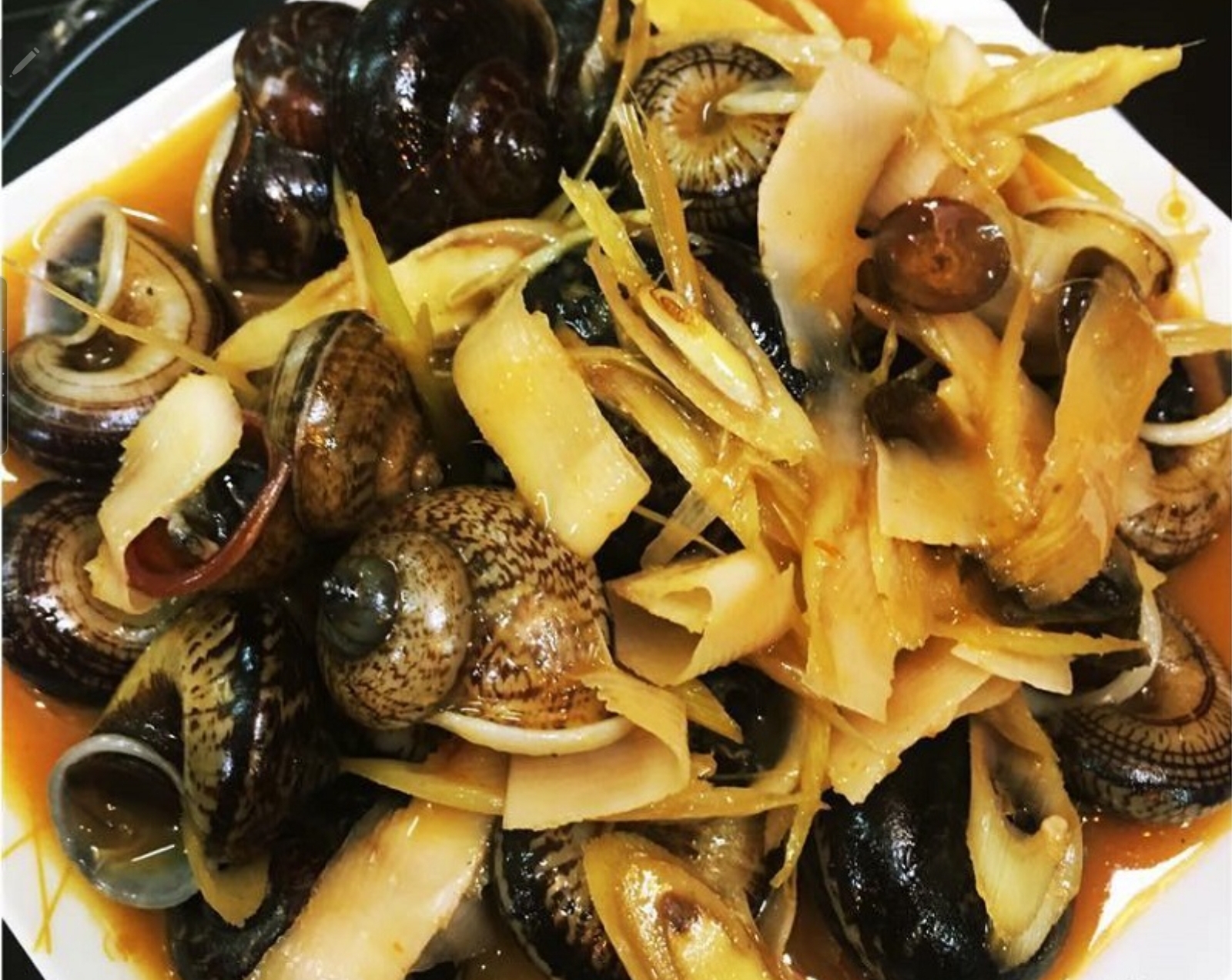 Có lẽ đây là một món ăn truyền thống siêu dễ ăn và ai cũng sẽ thích món ốc hấp gừng sả. Ốc sau khi rửa sạch cát bụi bên trong được hấp với gừng, sả, lá chanh.