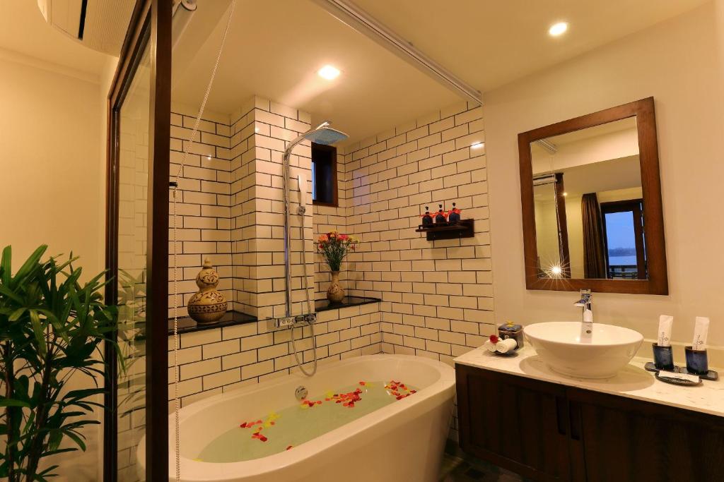 Phòng tắm hiện đại, trang bị đầy đủ phòng tắm đứng cùng vòi hoa sen. Các đồ dùng vệ sinh như áo choàng tắm, khăn tắm, sữa tắm đều được chuẩn bị đầy đủ, thay mới mỗi ngày. Đội ngũ nhân viên của Odyssey Hoi An sẽ đảm bảo cho kỳ nghỉ của du khách luôn ở điều kiện tốt nhất, xứng đáng với số tiền du khách đã bỏ ra.