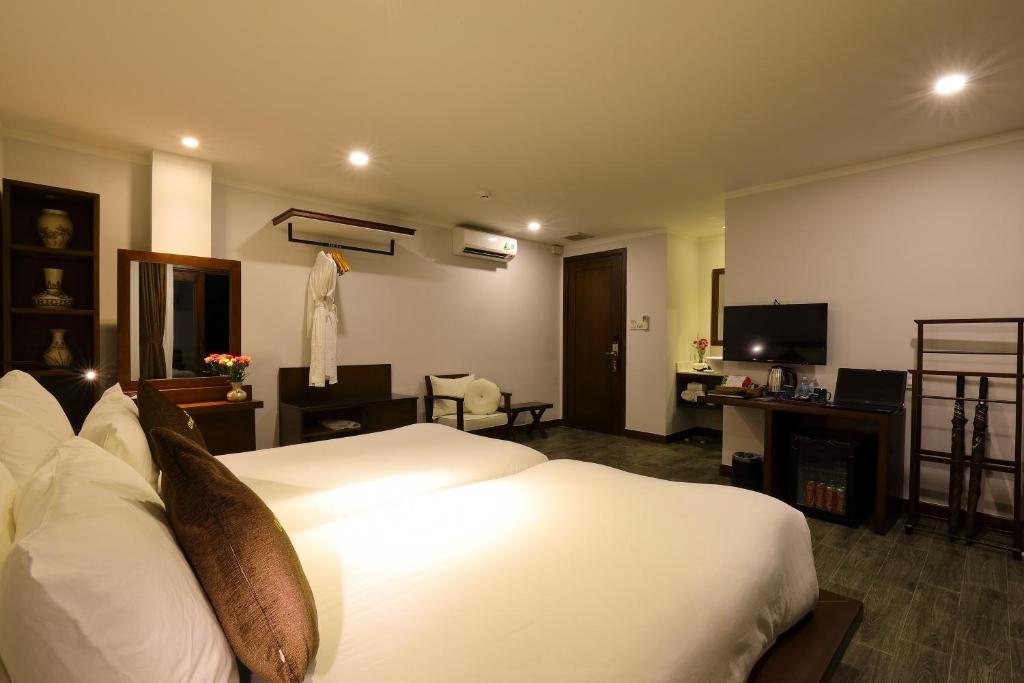 Tùy vào nhu cầu, du khách có thể lựa chọn phòng Deluxe có 1 giường đôi hoặc 2 giường đơn với diện tích căn phòng là 30m2. Phòng được trang bị đầy đủ nội thất,tiện nghi đẳng cấp 4 sao, đảm bảo cho chuyến nghỉ dưỡng của du khách hoàn hảo và đáng nhớ nhất.