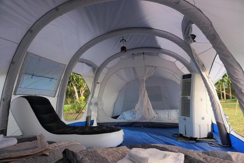Giúp du khách có những trải nghiệm mới mẻ, thức tế ngoài trời, tại khu nghỉ dưỡng Orchard Home Resort Nam Cát Tiên có bố trí thêm một số chiếc lều nhỏ với diện tích khoảng 14m2 gồm 2 giường đơn hoặc 1 giường đôi với sức chứa khoảng 4 người. Mỗi chiếc lều cùng được trang bị đầy đủ tiện nghi như máy sấy tóc, đồ về sinh cá nhân, khăn tắm,..