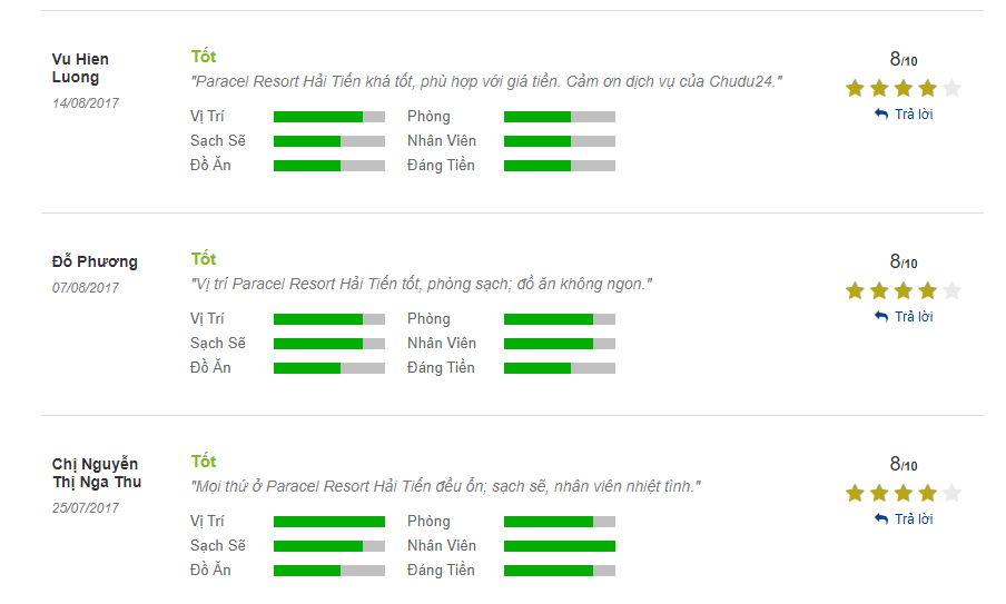 Dưới đây là một số feedback về Paracel Hải Tiến Resort, tham khảo thêm để bạn có thể tự đánh giá khu nghỉ dưỡng này nhé: