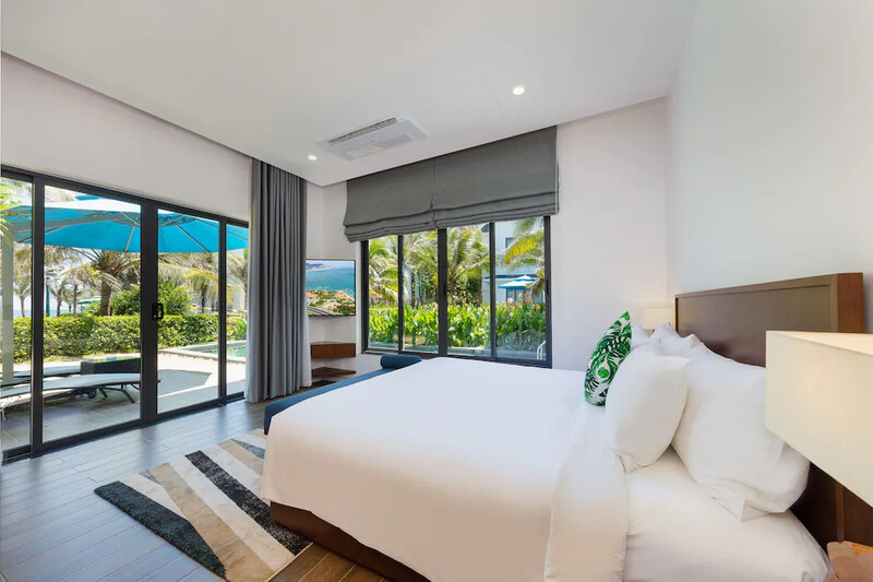 Beach view 04 bedroom villa có thiết kế không gian, nội thất, tiện nghi tương tự như  Garden view 04 bedroom villa. Tuy nhiên, điểm khác biệt lớn nhất được nhiều du khách cân nhắc lựa chọn đó là thiết kế hướng biển, gió mát, là địa điểm mà du khách có thể chiêm ngưỡng được khung cảnh hoàng hôn trên biển cực kì mộng mơ, quyến rũ.