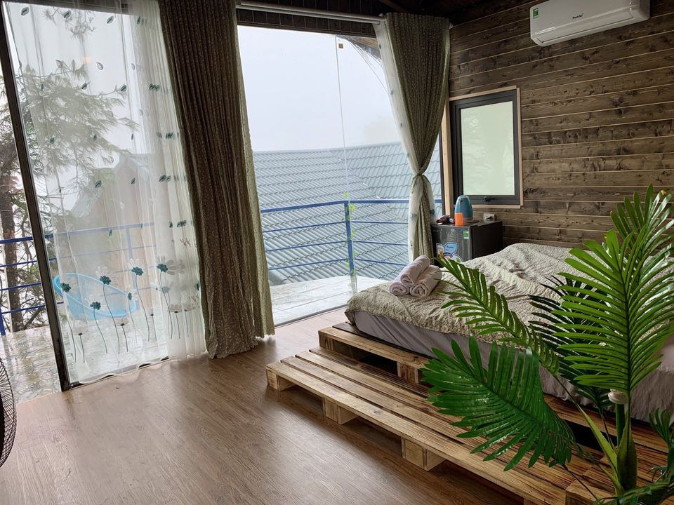 - Ngắm cảnh ngoài ban công với view phía trước là thung lũng và núi cao hùng vĩ nơi thị trấn sương mờ