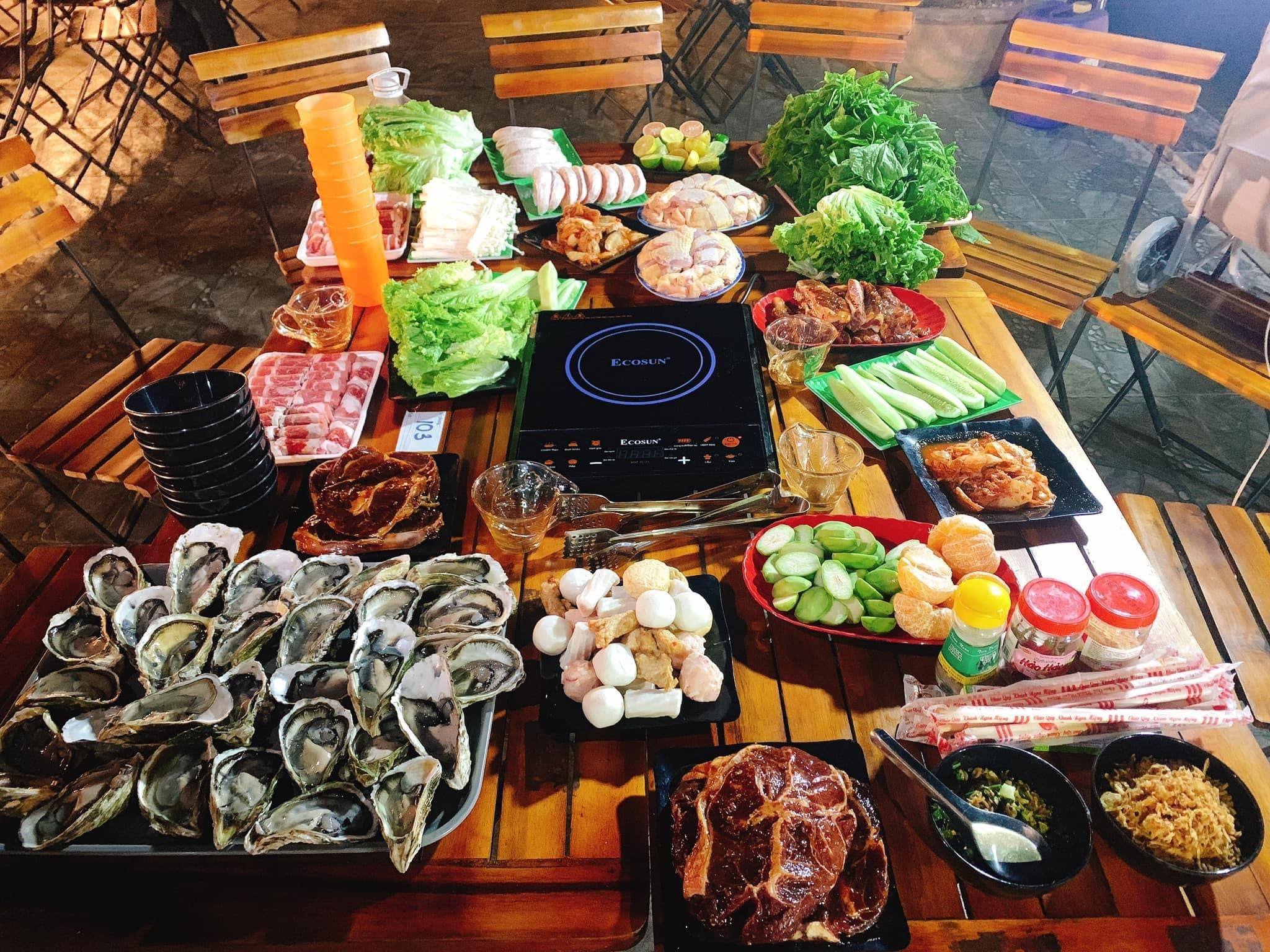 - Sân nướng phục vụ các bữa tiệc BBQ ngoài trời siêu thoáng đãng, nằm ngay cạnh bể bơi vô cực. Sân nướng đã được trang bị đầy đủ bếp nướng BBQ, bàn ghế và dụng cụ nướng, du khách có thể sử dụng hoàn toàn miễn phí. Ngoài ra, sân BBQ còn được trang trí bằng hệ thống đèn điện cực kỳ long lanh và lãng mạn
