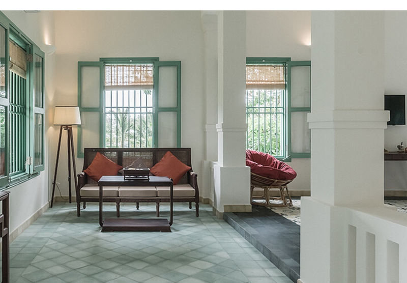 Khu biệt thự nằm tách riêng trong khoảng vườn với thiết kế cổ điển cùng tông màu xanh mint đem tới cho du khách cảm giác mộc mạc, thân quen như chính căn nhà của mình. Sở hữu cho mình khoảng sân vườn rộng lớn sau nhà, bạn có thể đọc sách, uống trà và ngắm nhìn thiên nhiên. Một nơi thích hợp để thư giãn sau những bộn bề lo toan của cuộc sống thường nhật.