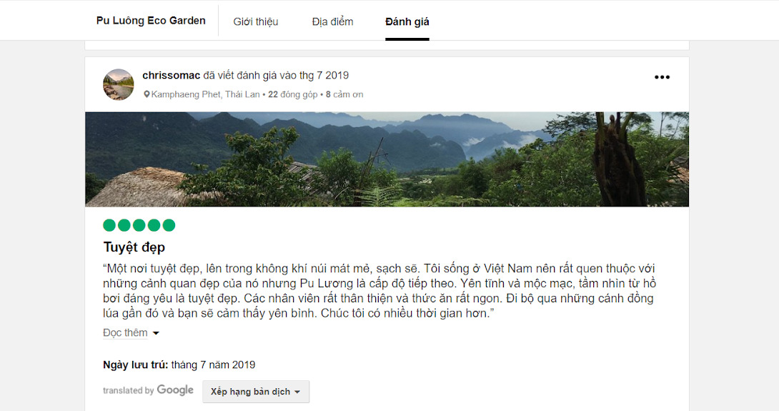 Một số feedback và review của khách hàng về Pù Luông Eco Garden