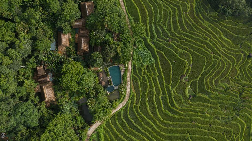 Khu resort có thế dựa vào núi và nhìn hướng ra khung cảnh xung quanh với chân là những thửa ruộng bậc thang, đem đến tầm nhìn ấn tượng tại một chốn bình yên, thơ mộng và đầy mát mẻ.