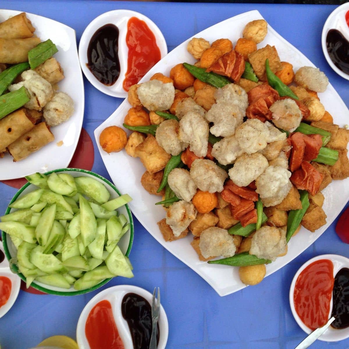 Tại đây, đồ ăn khá đa dạng và khá ngon. Đặc biệt là giá không quá đắt đỏ nữa. Các món hot nhất tại khu này là bắp xào, bánh tráng trộn băm tóp mỡ, bánh bèo bột lọc… Nếu chỉ đi một buổi thôi thì sẽ không nếm thử được hết các “siêu phẩm” ở đây đâu.