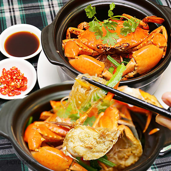 Quán ăn nổi tiếng với nguồn thực phẩm là những con ghẹ Cà Mau chính gốc, tươi sạch, to lớn, chắc thịt và hàng trăm loài hải sản khác nữa được nhập về Thành phố Hồ Chí Minh từ miền sông nước.