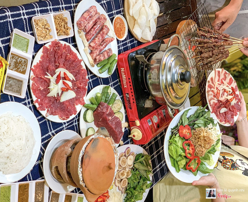 Đặc biệt đồ ăn ở đây được chuẩn bị rất sạch sẽ và chu đáo với các món chủ yếu là thịt bò, thịt lợn, lẩu, cơm gà… Tuy nhiên món nướng thịt bò tảng được yêu thích nhất khi đến đây.