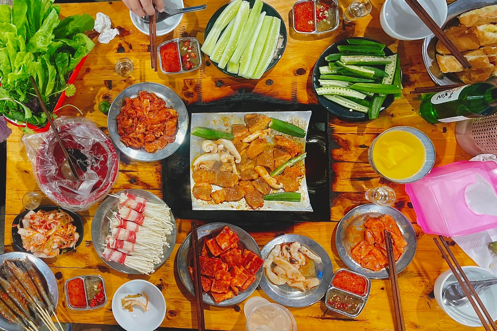 Nói đến quán nướng gần đây ở Hà Nội, chúng ta không thể không nhấn mạnh đến điểm thu hút chung đó là các món thịt nướng được tẩm ướp gia vị đậm đà, càng tuyệt hơn khi kết hợp với nước chấm đặc trưng. Bữa tiệc thịt nướng kiểu Hàn Quốc sẽ không hoàn chỉnh nếu thiếu salad và panchan, do đó quán luôn có sẵn nhiều loại panchan và salad rau cho thực khách lựa chọn.