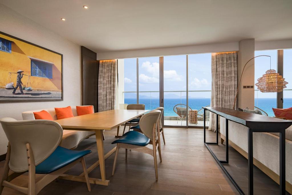 Với những trang thiết bị cực kỳ hiện đại phục vụ cho nhu cầu tịnh dưỡng của du khách như bồn tắm spa, minibar, smart TV,… Ban công siêu rộng, với hệ thống cửa kính cực lớn, hưởng trọn ánh sáng tự nhiên và những cơn gió mát lành từ biển cả thổi vào tạo nên bầu không khí thoáng đãng, thư giãn tột đỉnh.