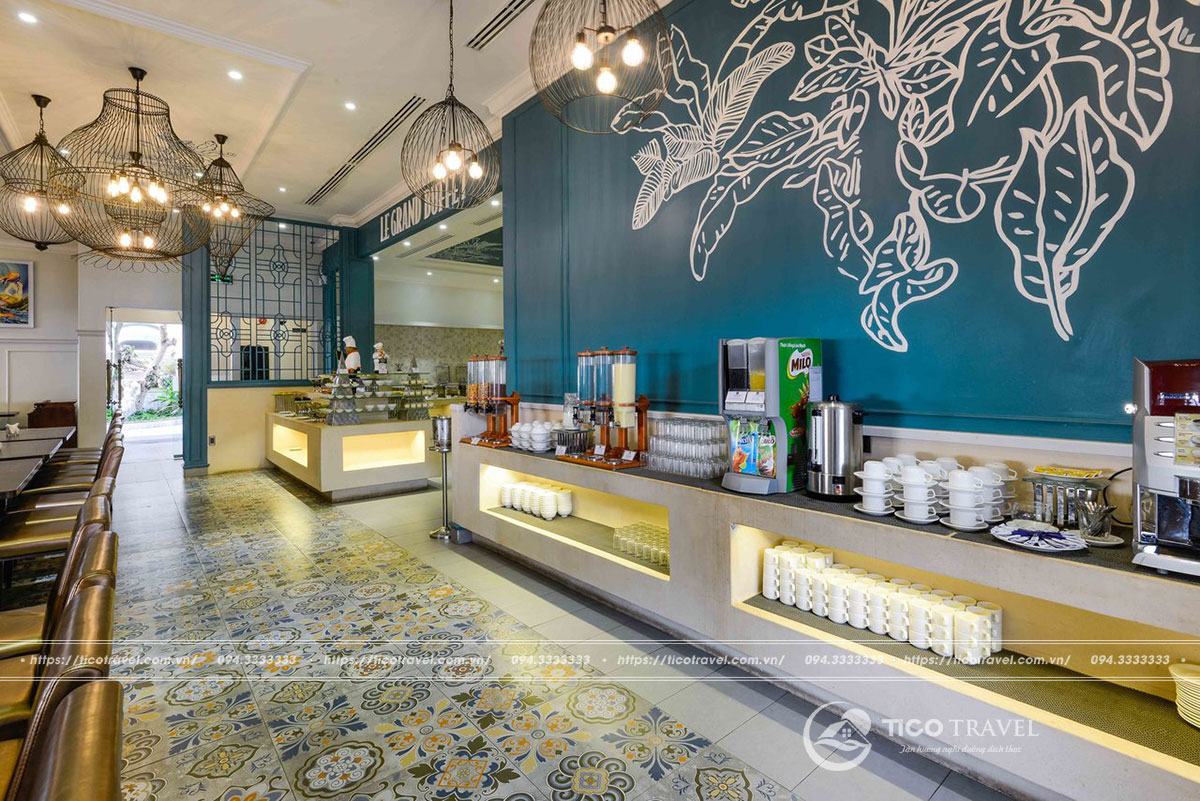 Ở đây bạn sẽ được cung cấp không gian ăn uống sang trọng như kiểu hoàng cung, đồng thời bạn sẽ có thể ngắm biển và thưởng thức quang cảnh lãng mạn khi ăn uống cùng với sự phục vụ tận tình, thân thiện của nhân viên nơi