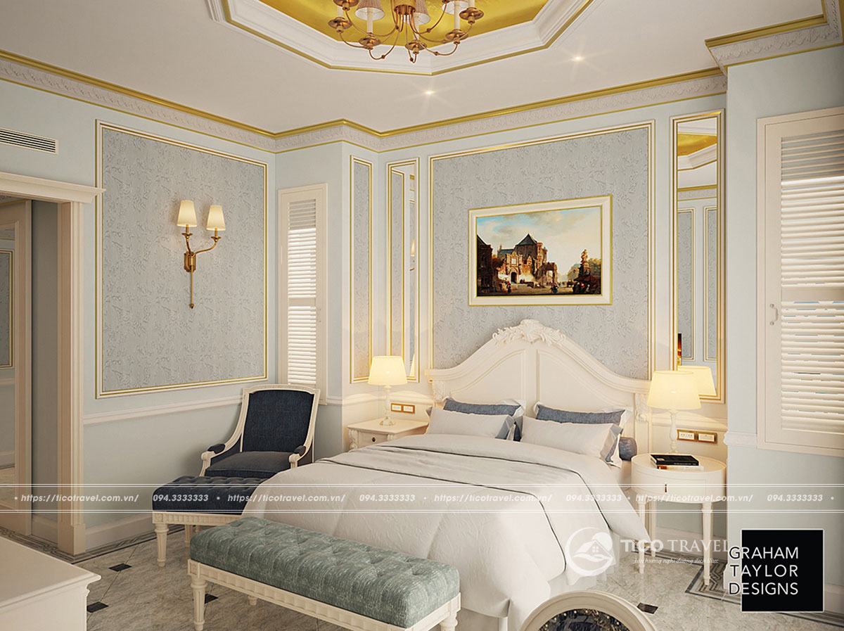 Phòng với diện tích 70m2 phù hợp với cặp đôi. Du khách có thể chọn giường đôi cỡ lớn hoặc 2 giường đơn. Phòng được thiết kế với tông màu chủ đạo là trắng và vàng kim làm cho căn phòng tinh tế và sang trọng. Phòng có ban công lớn, tại đây du khách có thể ngồi thưởng thức trà nóng và ngắm đại dương xanh. Trong phòng được trang bị đầy đủ tiện nghi cho du khách có không gian thoải mái nhất.